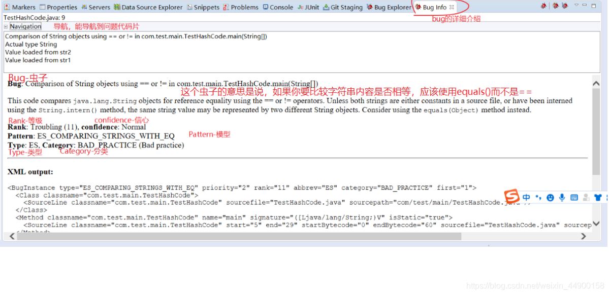 FindBugs面板视图中就会展示它所找到的bugs并能连接到对应的代码片去。 -