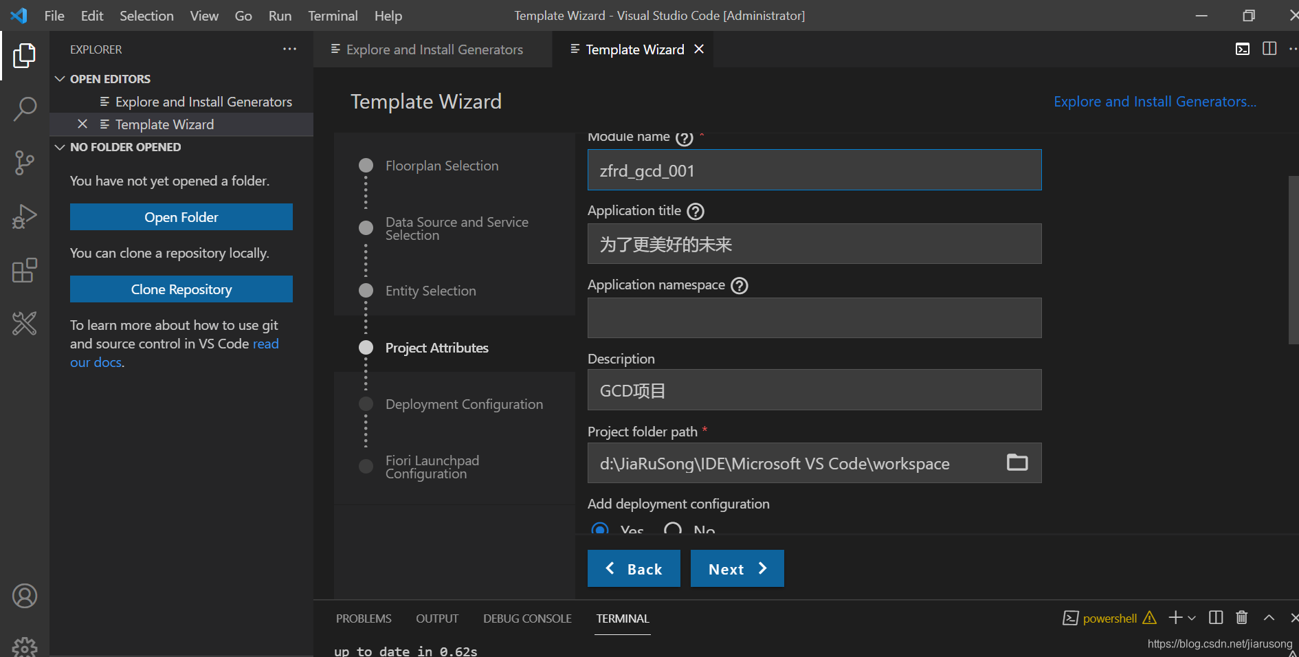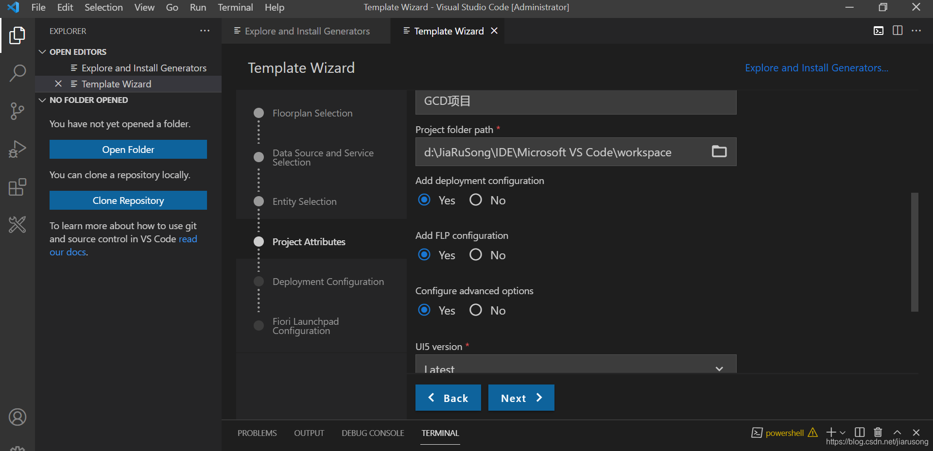 ?配下系统的URL,账户密码,端口,然后再账户密码输入框有个登录,点一下,就出来ODATA服务了,该选哪个就选哪个呗。接下来一大堆配置都是不言自明的,不明那就拉倒吧,一路拉下来选个版本,选个项目主题,我都是Belize,如果不想现在就配部署系统和lanuchpad的配置就先跳过选NO