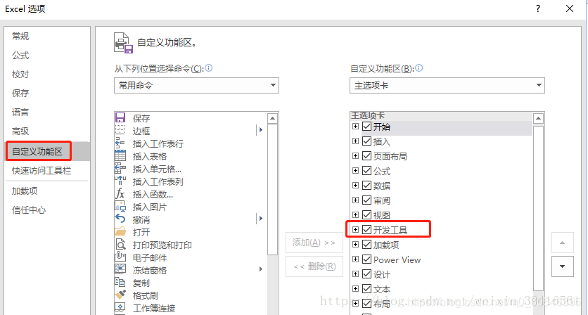 方法2:office2010版本以上:点击文件--选项--自定义功能区--自定义功能区--勾选开发工具--确定