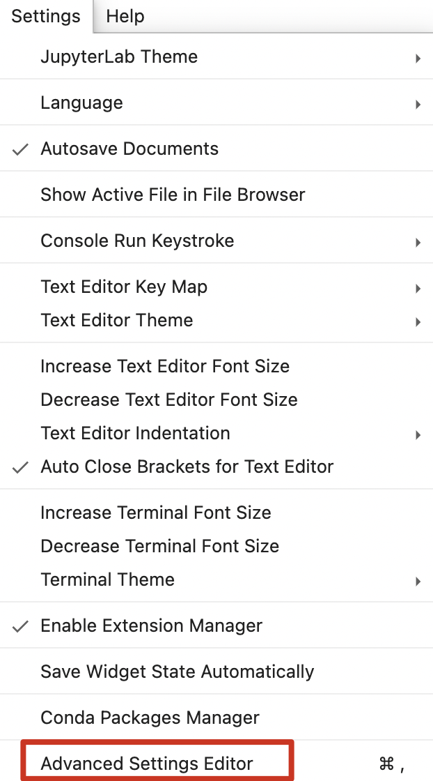jupyter notebook 的配置文件略微复杂,因此本文推荐更加友好的第二种修改配置文件的方式 - 首先,在工具栏找到