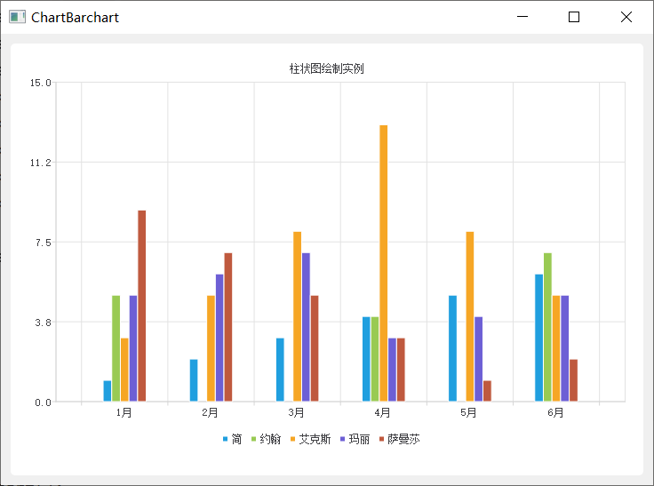 chart->setTitle(QString::fromLocal8Bit("柱状图绘制实例"));