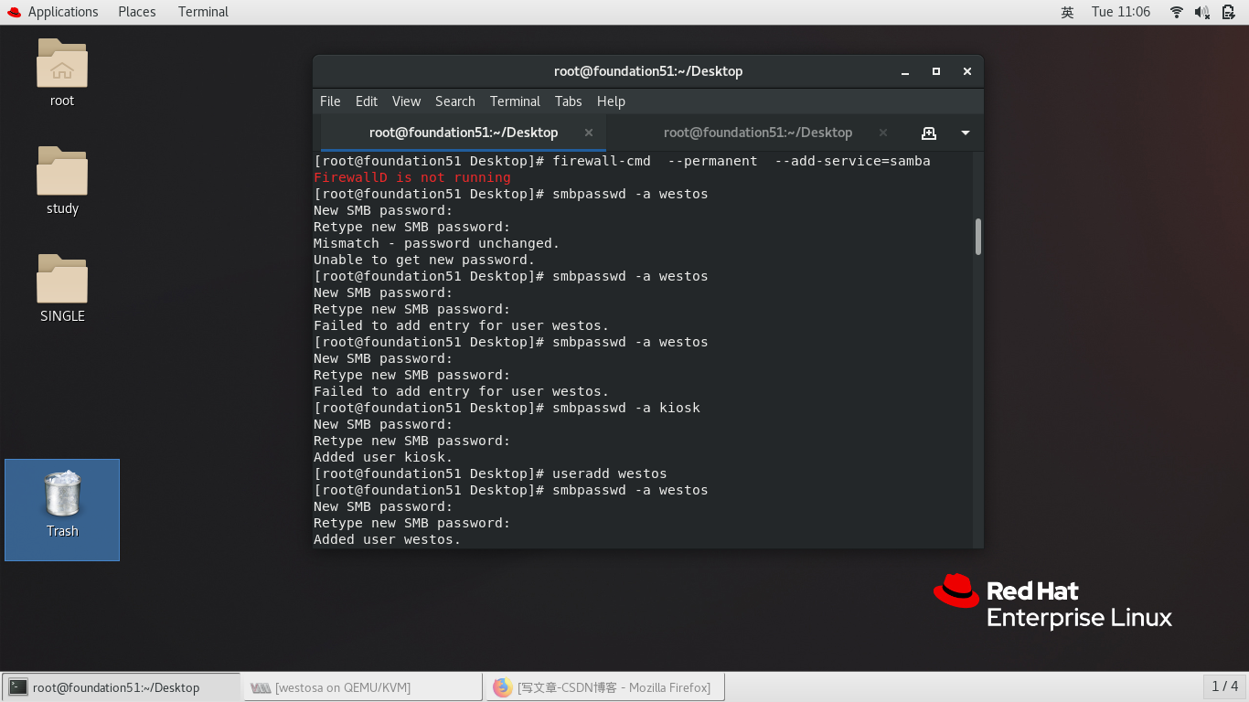 467 smbpasswd -a westos
