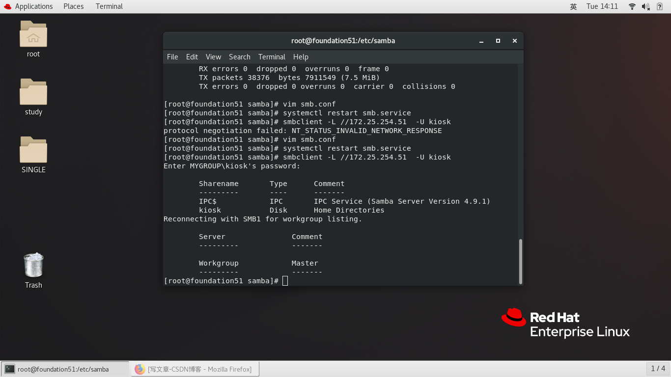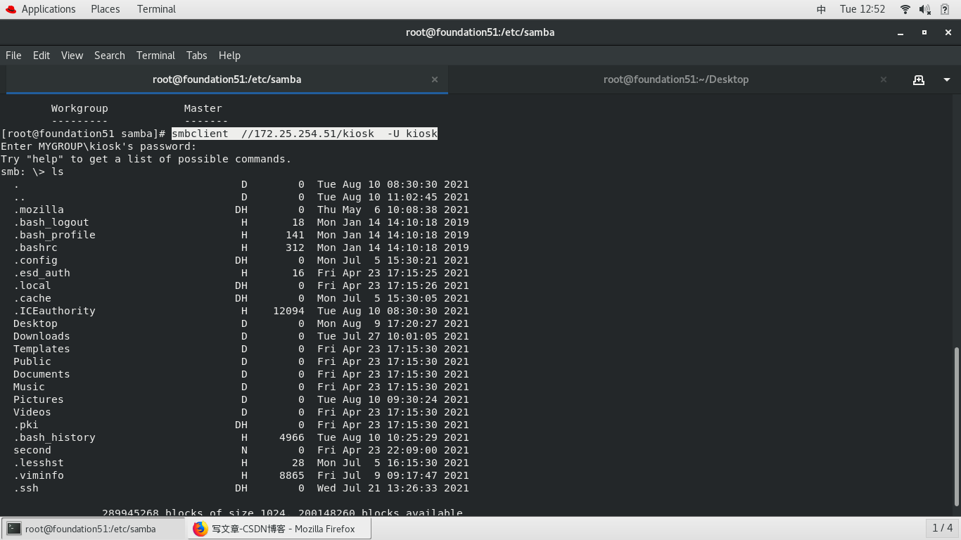 479 smbclient -L //172.25.254.51 -U kiosk kiosk用户登录查看