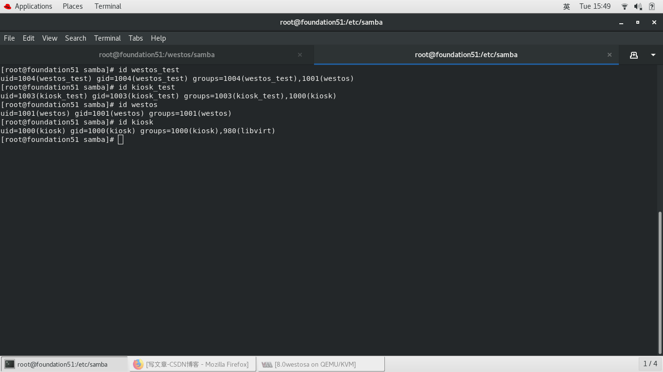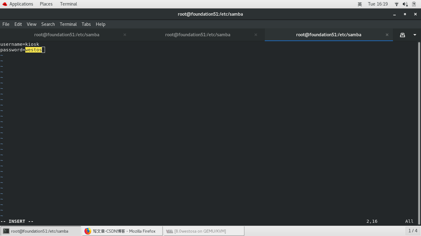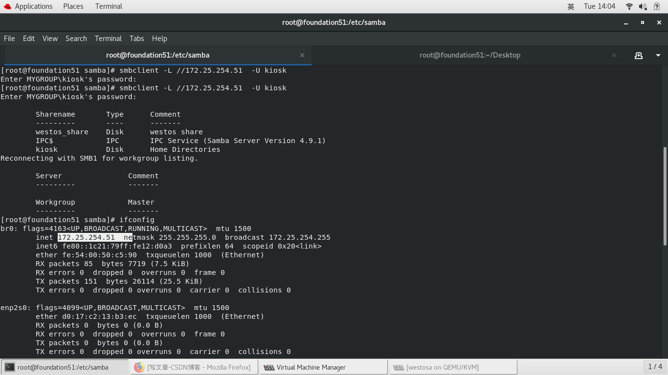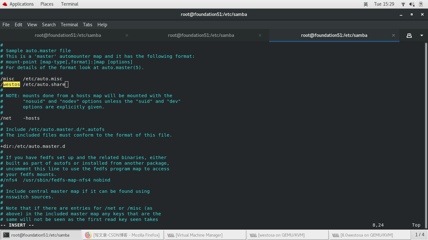 samba -fstype=cifs,username=kiosk,password=westos ://172.25.254.51/westos_share