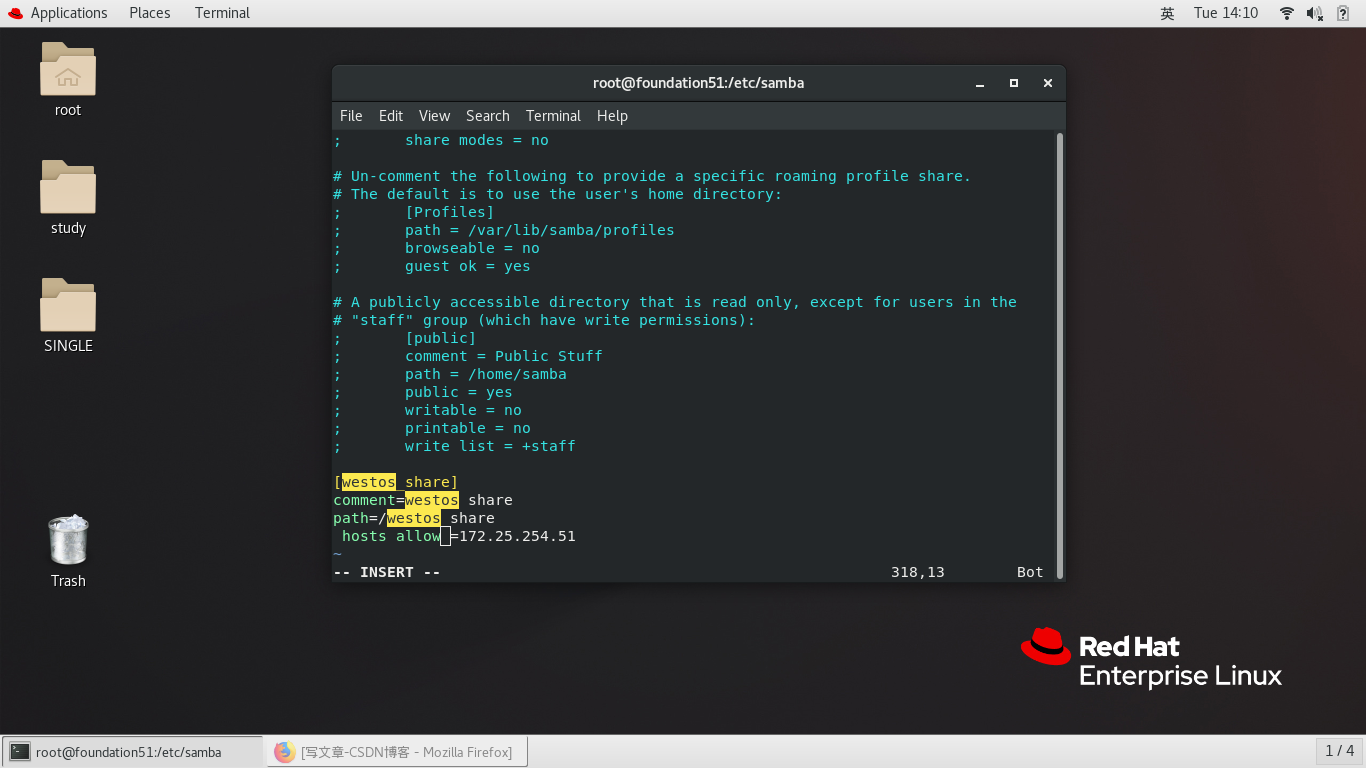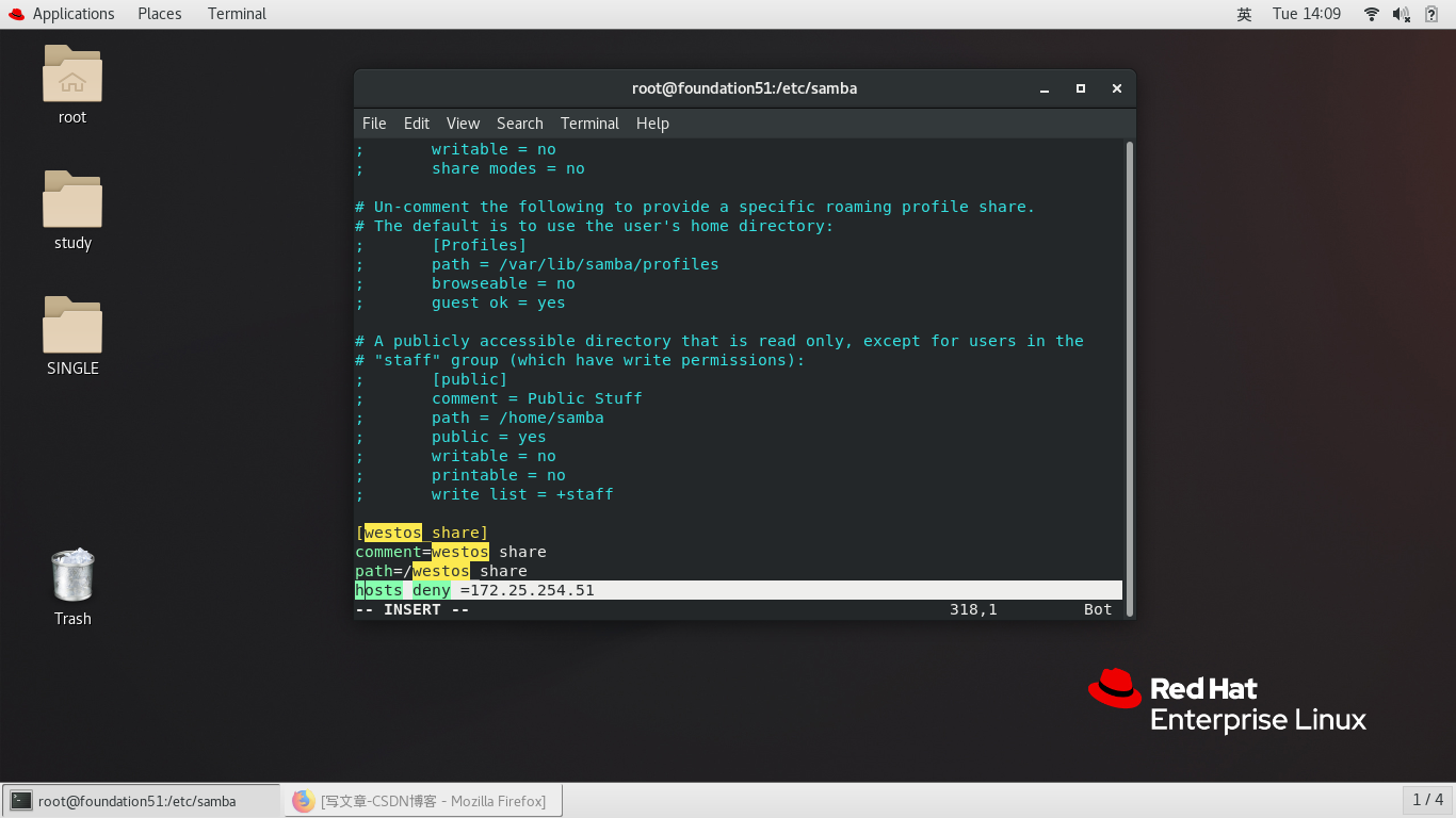 hosts allow =172.25.254.51 只允许51访问
