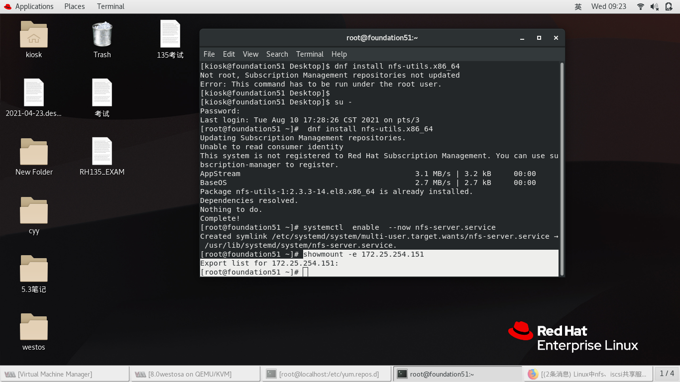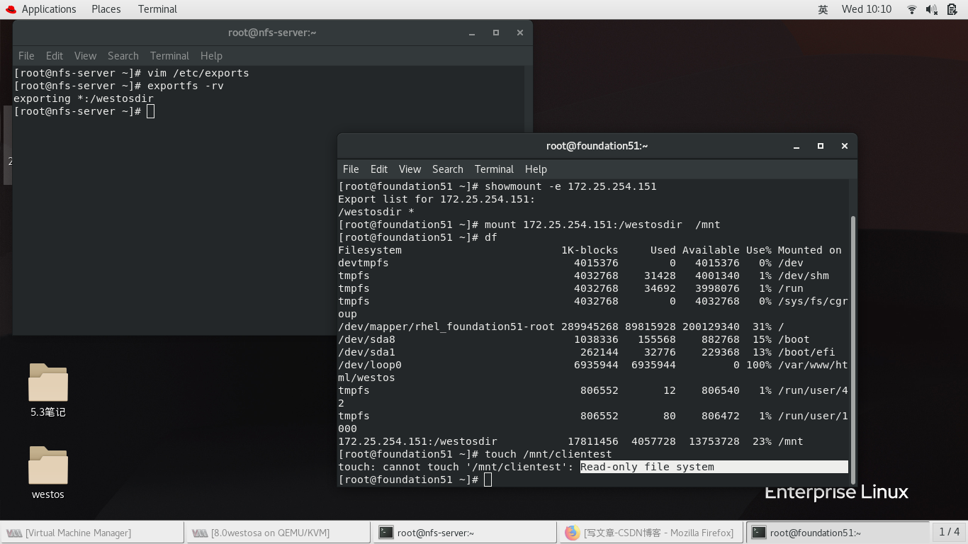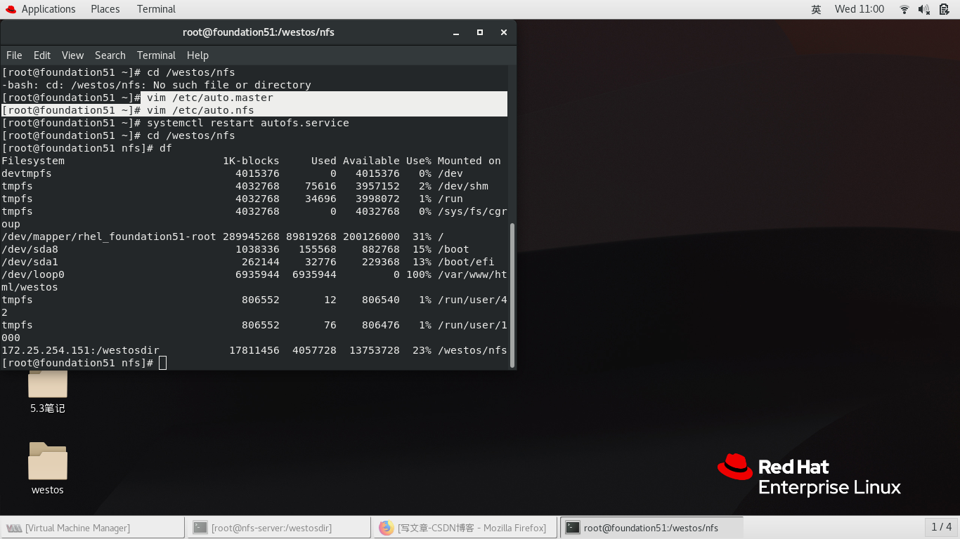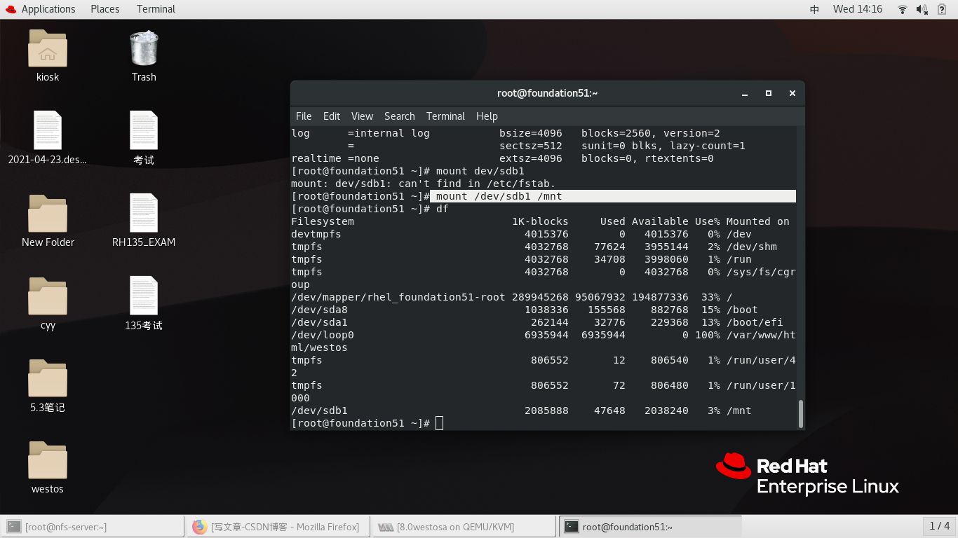 mount //172.25.254.51/westos_share /mnt/ -o username=kiosk,password=westos 挂载