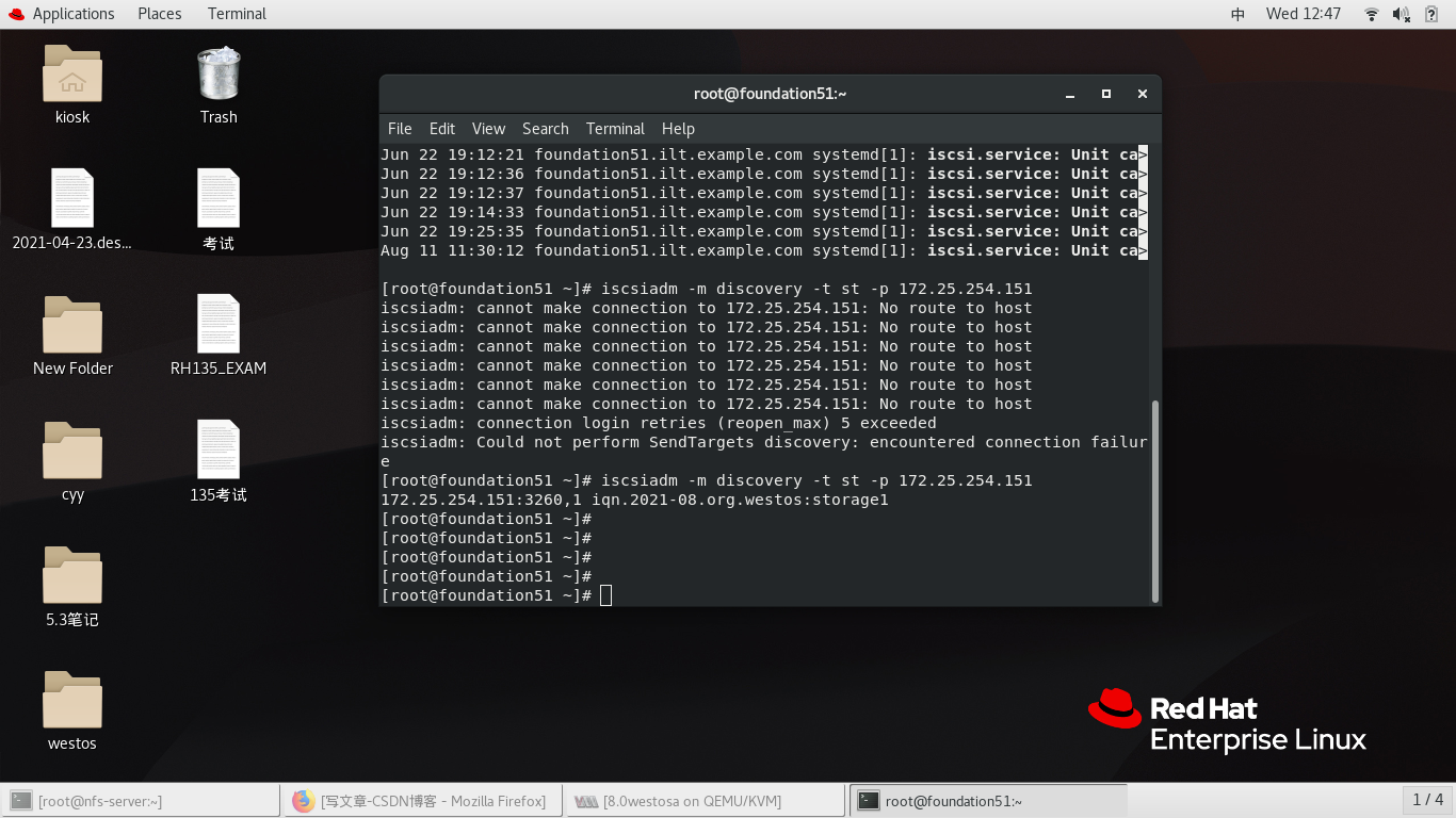 iscsiadm -m discovery -t st -p 172.25.254.151 查询共享