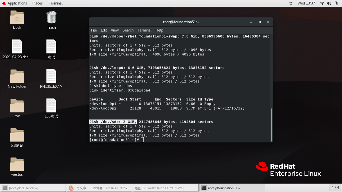 ? 服务开机时自动启动:如果需要使新划分的设备在开机时自动挂载到指定位置处,在编写自动挂载策略文件/etc/fstab时需要加入 _netdev 参数说明该设备类型为网络共享设备,否则系统将无法启动