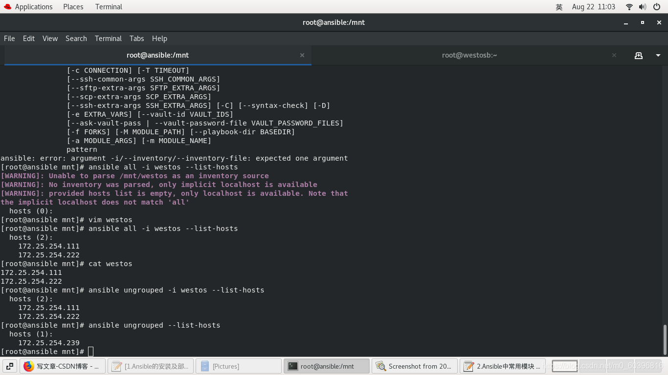 ansible all -i inventory? --list-hosts ansible westostest -i inventory? --list-hosts ansible ungrouped -i inventory? --list-hosts