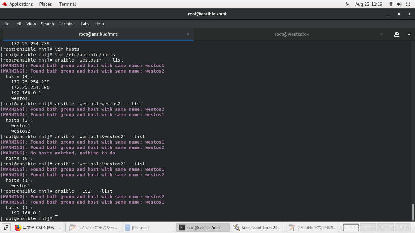 #ansible命令指定清单的正则表达式 *?? ??? ?##所有 ?? ??? ?##172.25.254.* ?? ??? ?##westos*