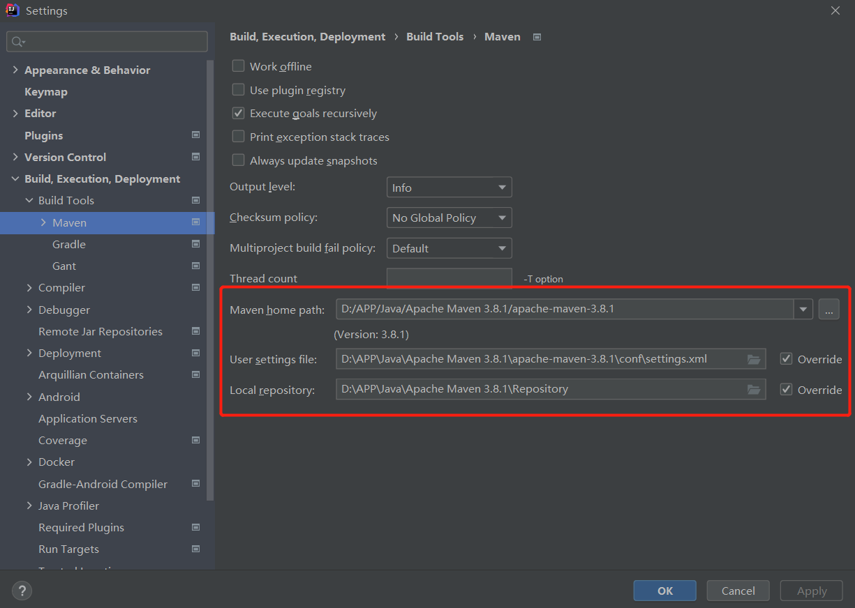 <option name="localRepository" value="D:\APP\Java\Apache Maven 3.8.1\Repository" />