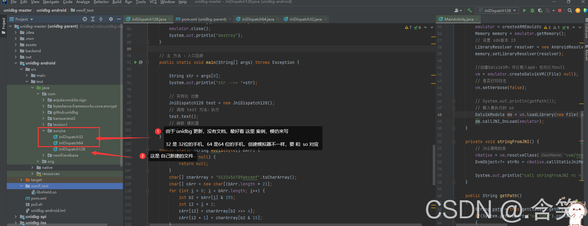 首先 看到?unidbg-android/src/test/java/com/sun.jna 里面的 文件,这里是 32 和 64 的案例