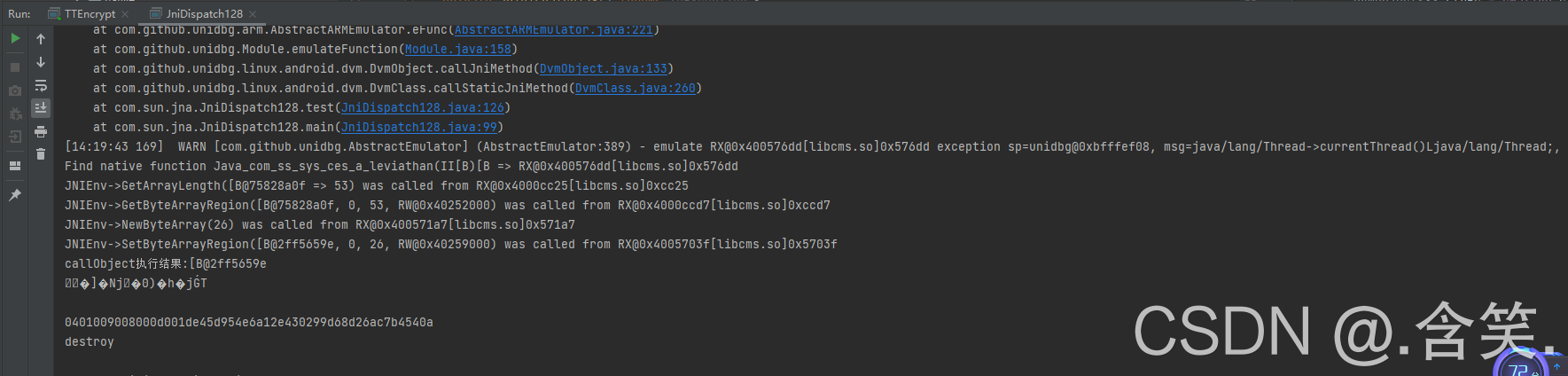 Object ret = Native.callStaticJniMethodObject(emulator, methodSign, -1,time,new ByteArray(vm,data));