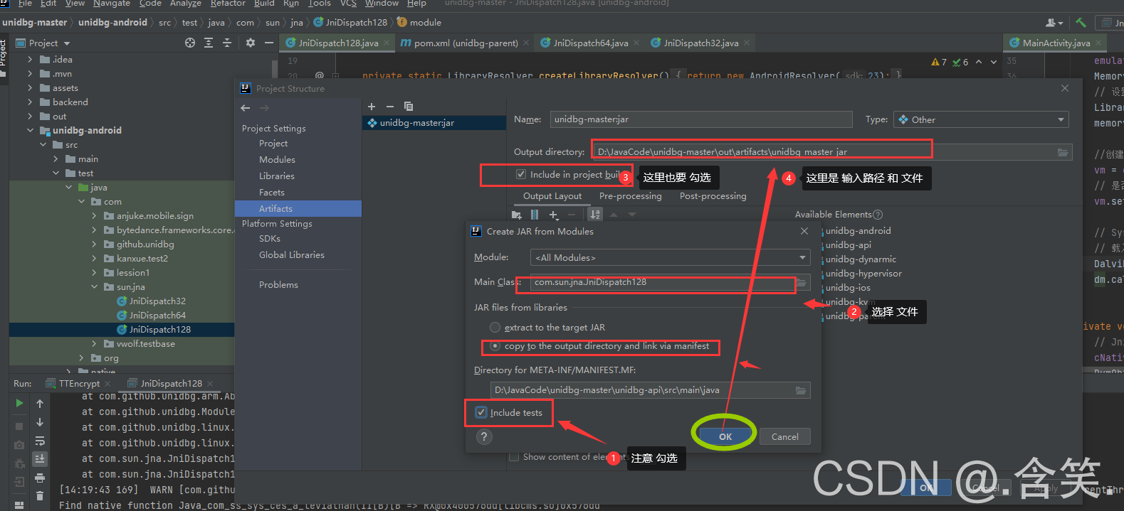 ?注意 俩个勾选的地方? include tests 和 include in project build 编译?