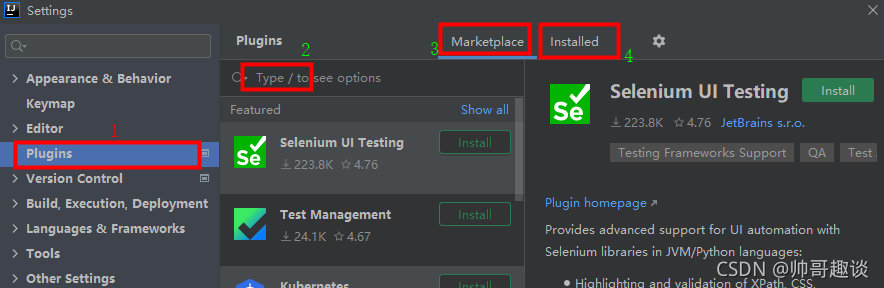 - 点击installed查看目前已经安装了哪些插件,避免重复安装。
