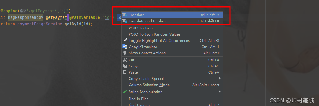 - ?使用方法:选中要翻译的单词,右键,这里有两个功能,一个是翻译,一个是翻译+替换,简直方便的不要不要。
