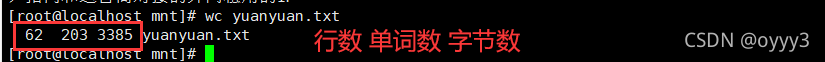 -l | 统计行数 | -w | 统计单词个数 | -c | 统计字节数 |