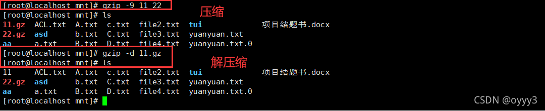 gzip? [-9] 文件名… ?//[-9]是压缩等级? bzip2? [-9] 文件名… ?? gzip -d .gz格式的压缩文件 bzip2 -d .bz2格式的压缩文件? //解压缩