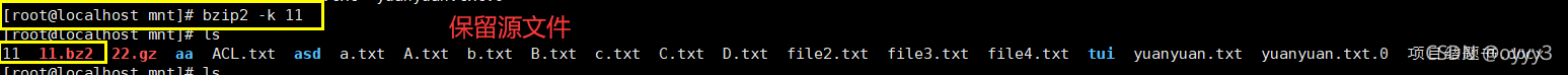 - 压缩后源文件消失(bzip2 -k 可以保留源文件)
