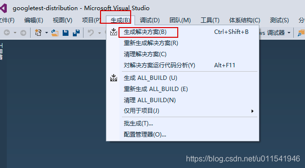 目的:生成Gtest工具所需的依赖,即.lib文件,有这些文件之后,我们在其他项目中只需要配置项目环境,包含Gtest的lib,就可以使用Gtest。