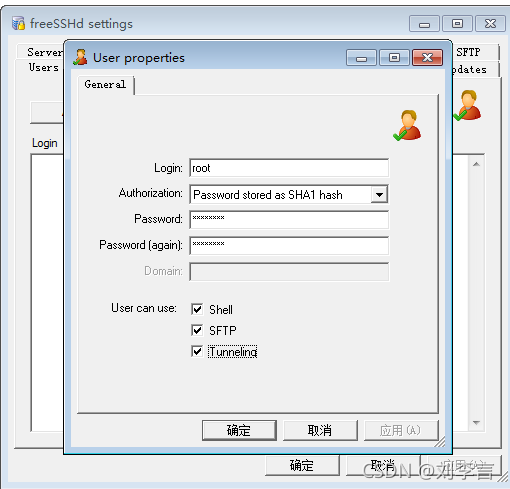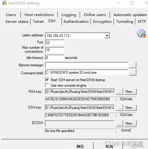 freeSSHd配置: