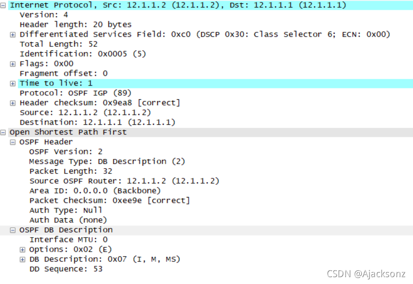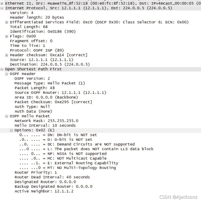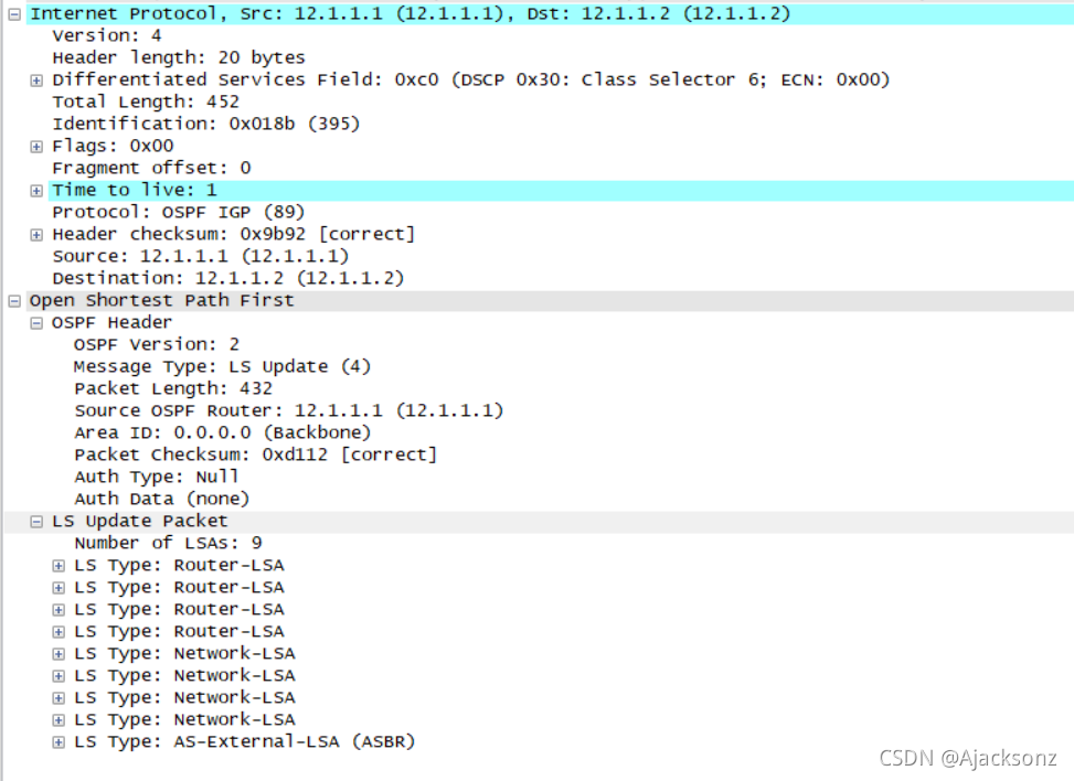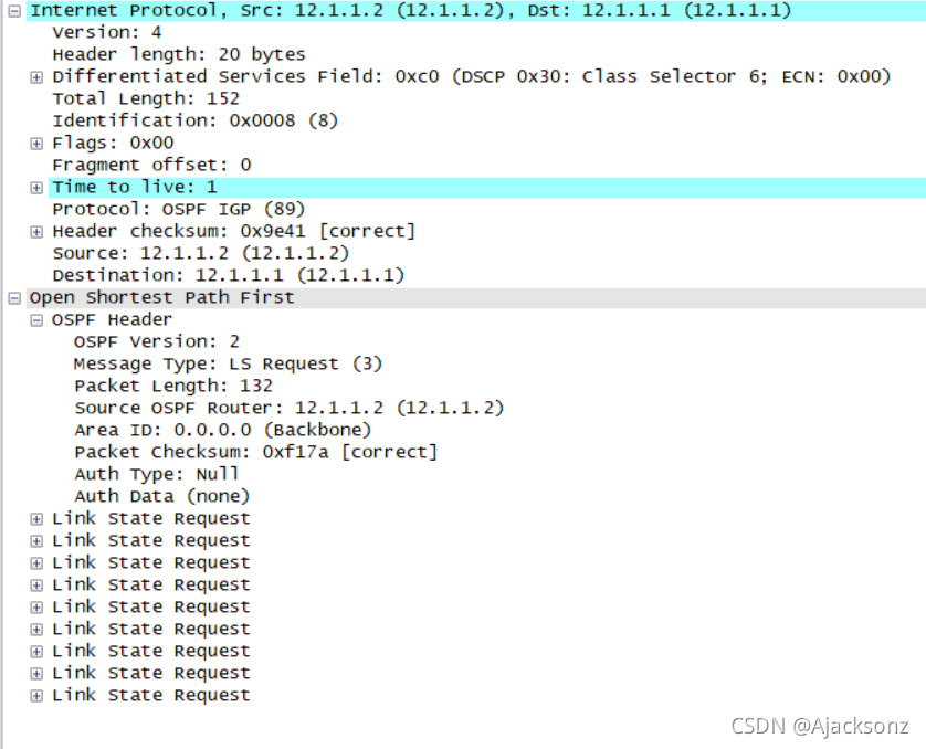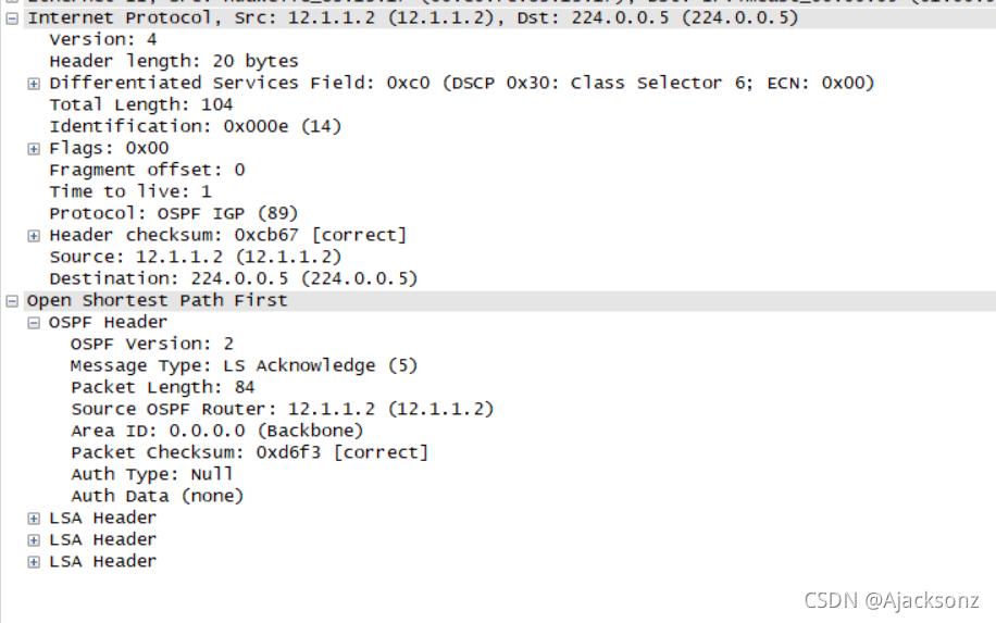 ?? ?LSACK:内容携带LSA的摘要 ?? ?作用:用来确认收到对方的LSA