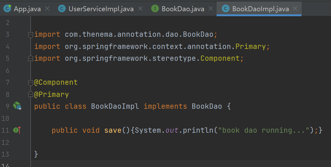 此时要在引用的地方添上@Qualifier来确定引用的bean  修改启动类后运行  可见结果正常  如果有两个或更多没有id的接口实现类,可以在其中一个类上添加@Primary来调用此实现类,只允许用一个