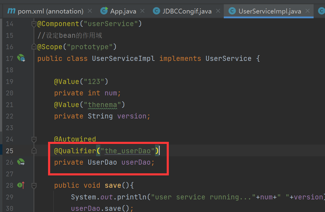 @Qualifier("userDao")
