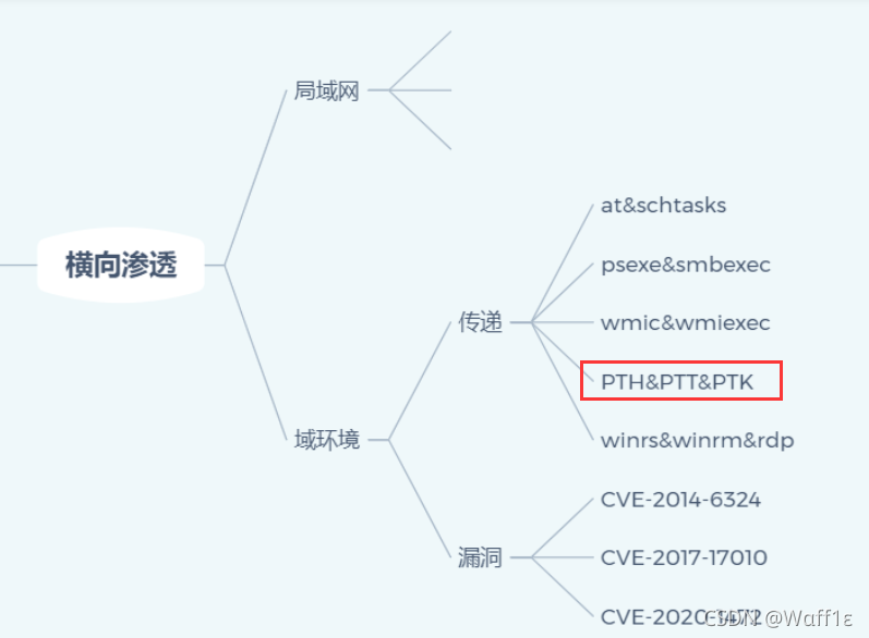 # PTT攻击的部分就不是简单的NTLM认证了,它是利用Kerberos协议进行攻击的,这里就介绍三种常见的攻击方法:MS14-068,Golden ticket,SILVER ticket,简单来说就是将连接合法的票据注入到内存中实现连接。