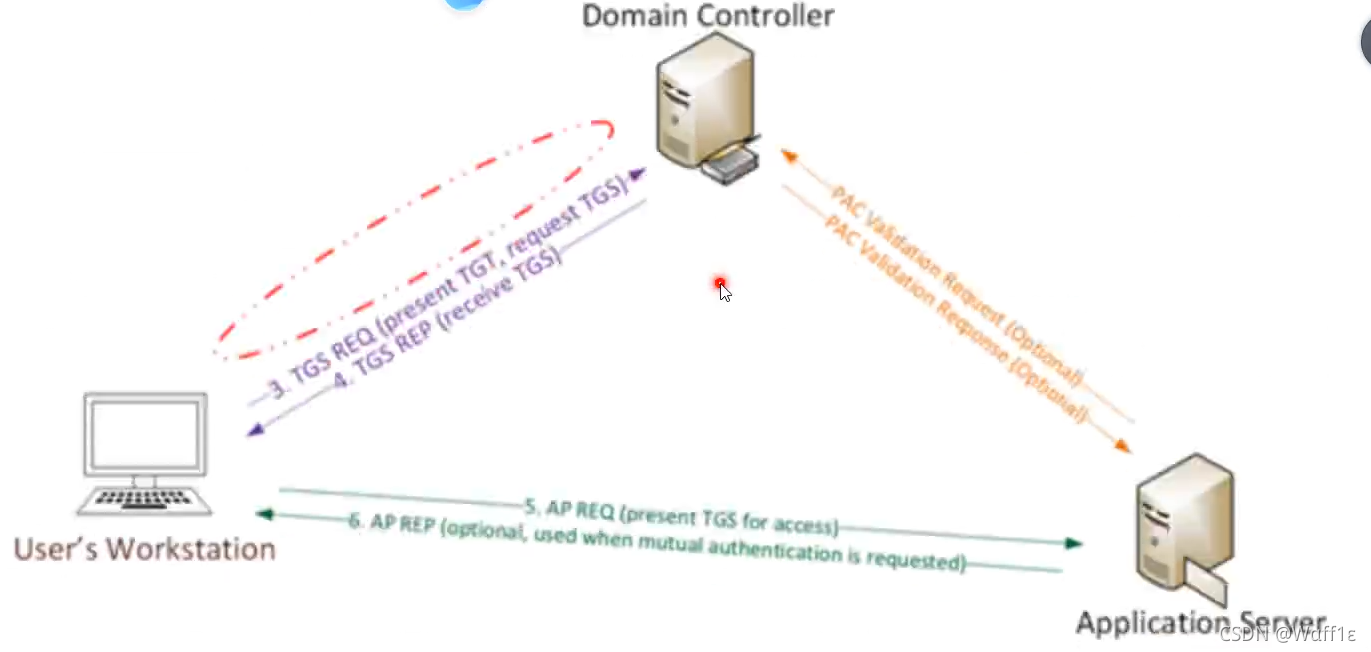 Kerberos协议具体工作方法,在域中,简要介绍一下: ? 客户机将明文密码进行NTLM哈希,然后和时间戳一起加密(使用krbtgt密码hash作为密钥),发送给kdc(域控),kdc对用户进行检测,成功之后创建TGT(Ticket-Granting Ticket) ? 将TGT进行加密签名返回给客户机器,只有域用户krbtgt才能读取kerberos中TGT数据 ? 然后客户机将TGT发送给域控制器KDC请求TGS(票证授权服务)票证,并且对TGT进行检测 ? 检测成功之后,将目标服务账户的NTLM以及TGT进行加密,将加密后的结果返回给客户机。