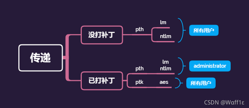 总结:KB2871997补丁后的影响(systeminfo可以查看补丁信息) pth:没打补丁用户都可以连接,打了补丁只能administrator连接 ptk:打了补丁才能用户都可以连接,采用aes256连接 KB22871997是否真的能防御PTH攻击? - FreeBuf网络安全行业门户