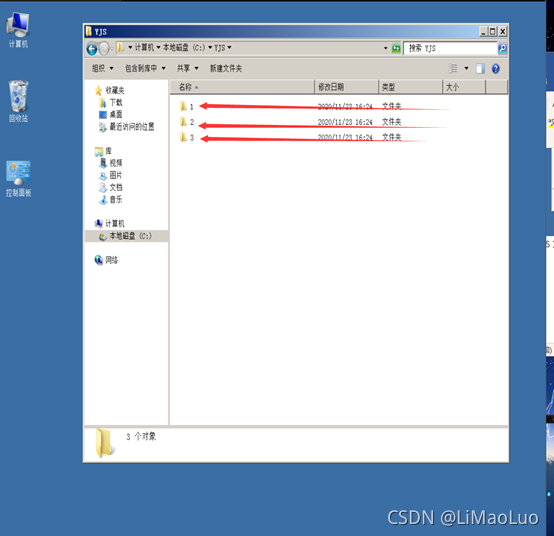 2、在YJS文件夹中在创建3个文件夹,命名为1、2、3