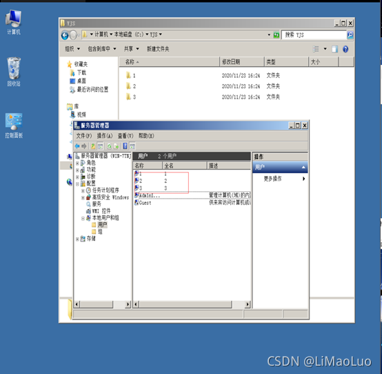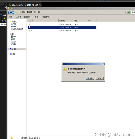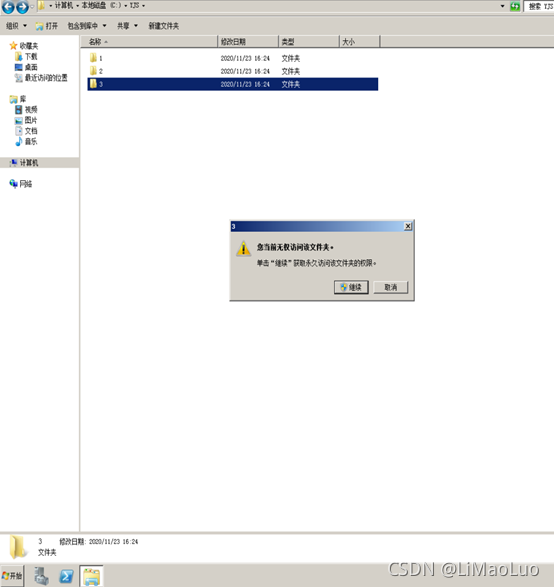 接下来,进行验证,首先登录1用户,只能打开1文件夹而打不开2,3文件夹因为没有权限