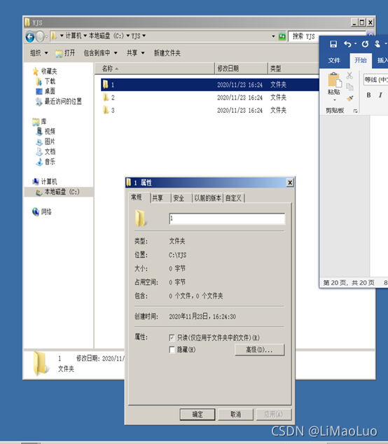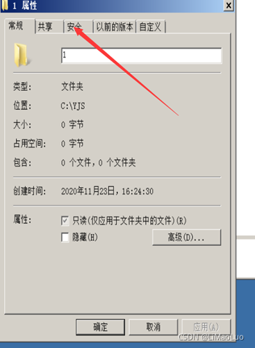 之后呢就先假设登录1用户,进入YJS的文件夹,就只对1拥有相应打开的权限,但不能打开2.3文件夹。