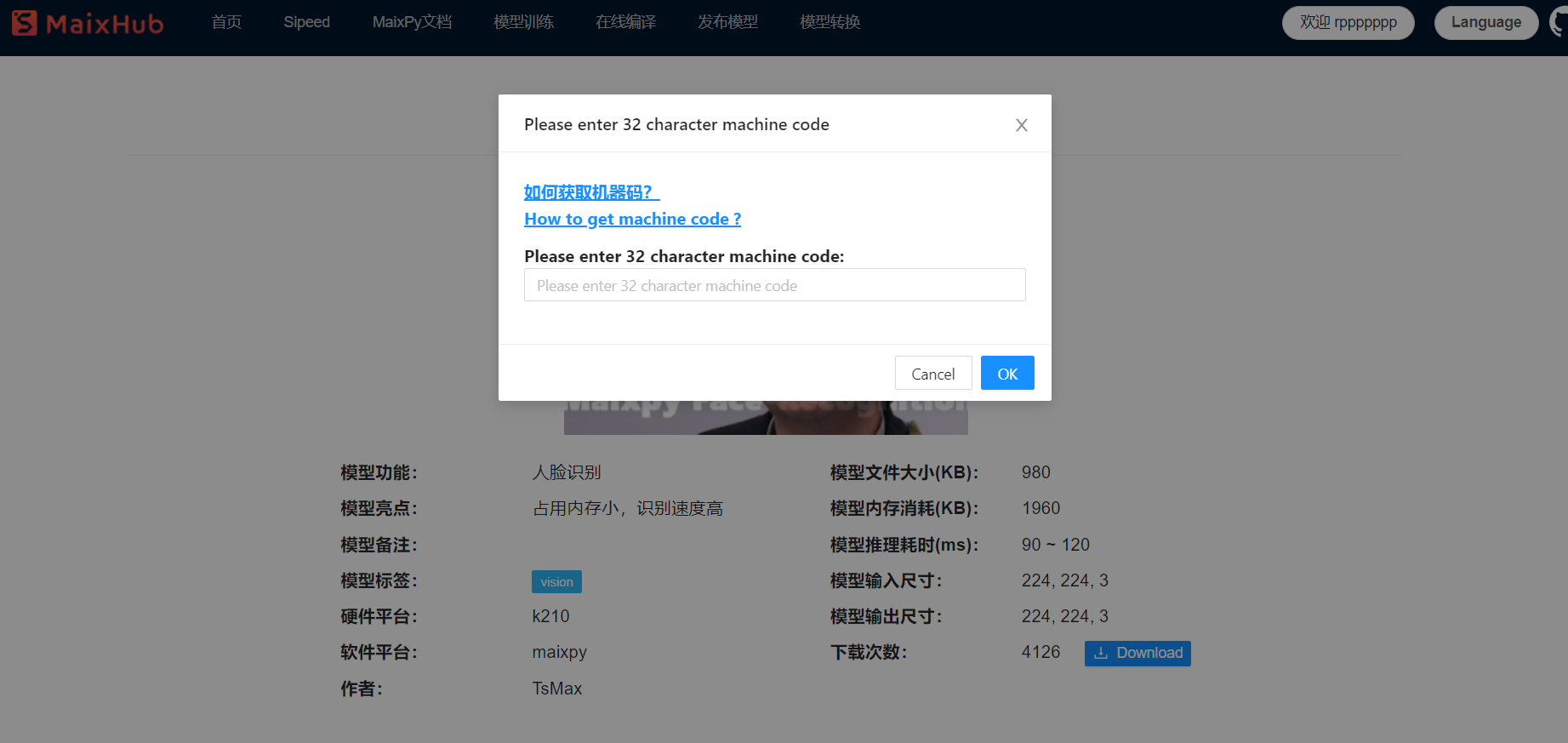 Sipeed MaixHub – sipeed AI 模型平台(下载模型的网站)