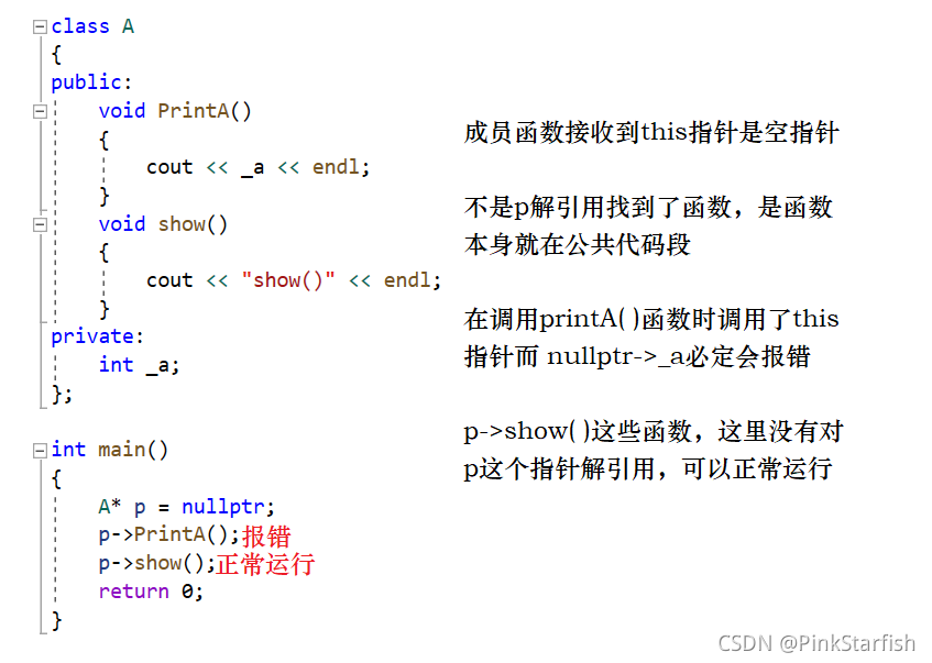 C++编译器给每个“非静态的成员函数“增加了一个隐藏的指针参数,让该指针指向当前对象(函数运行时调用该函数的对象),在函数体中所有成员变量的操作,都是通过该指针去访问。只不过所有的操作对用户是透明的,即用户不需要来传递,编译器自动完成。