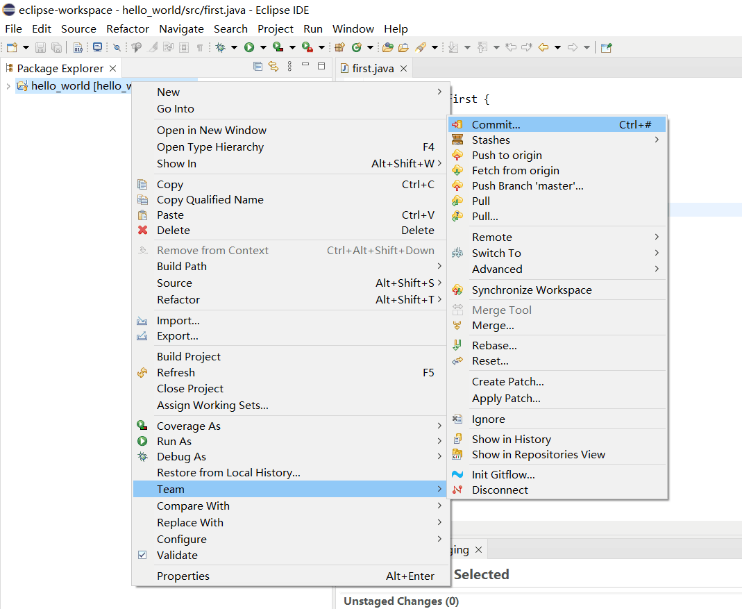 右键选中project,Team->Share Project,打勾选中,如果没有创建git库需要先创建