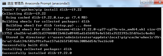 因为在网上找的方法都是在cmd环境下进行的,一直不成功,在anaconda prompt下成功了,安装dlib时注意要在后面添加版本号