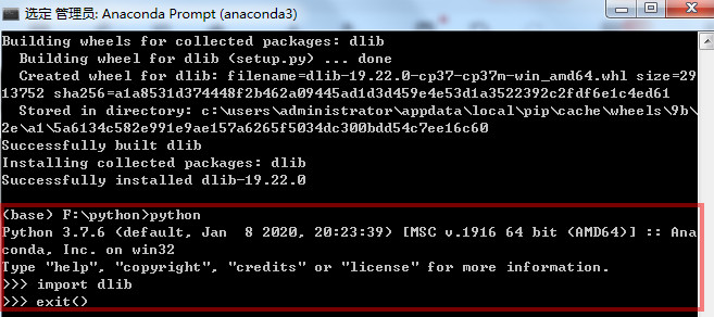 - 在网上查到的方法还有先下载dlib包,解压后进行python setup.py install命令,还有使用conda命令的,但是我都没有运行成功,所幸现在成功了。