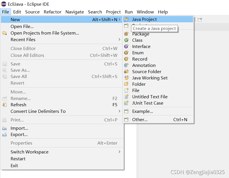 - 上方菜单栏依次点击 File? -->? New? -->? Java Project??