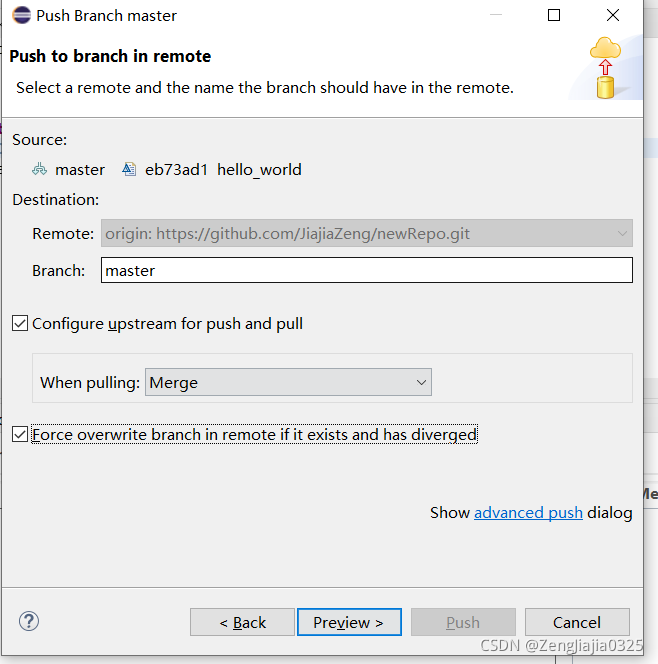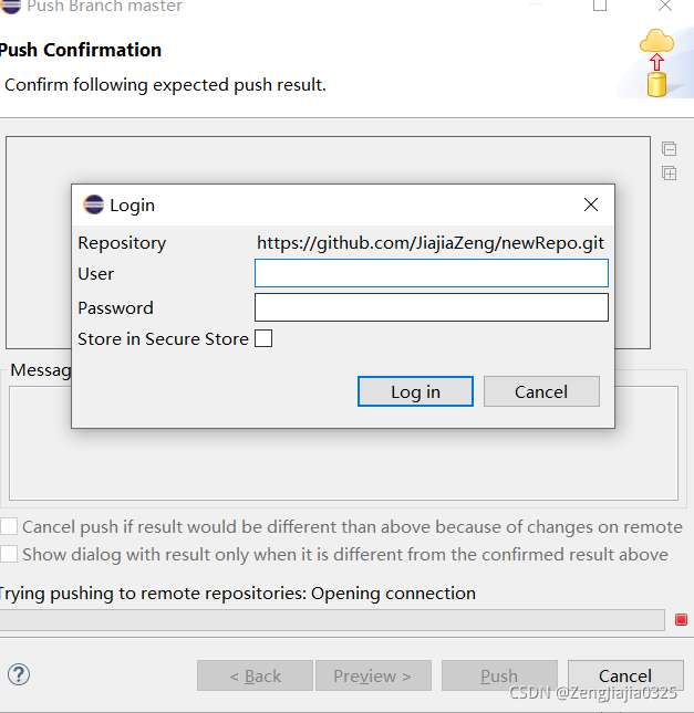 - ?然后将从GitHub复制过来的http地址粘贴到此处,输入用户名以及密码,勾选Store in Secure Store? ,点击Preview