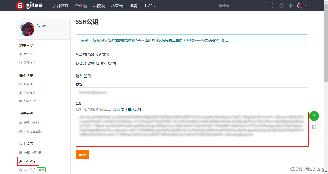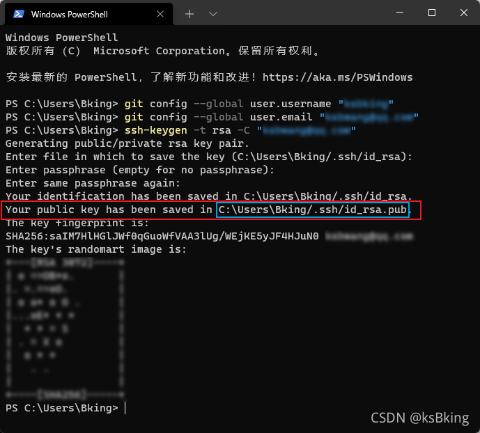 找到Your public key has been saved in C:\Users\Bking/.ssh/id_rsa.pub. 其中C:\Users\Bking/.ssh/id_rsa.pub就是SSH公钥的文件,用记事本打开复制
