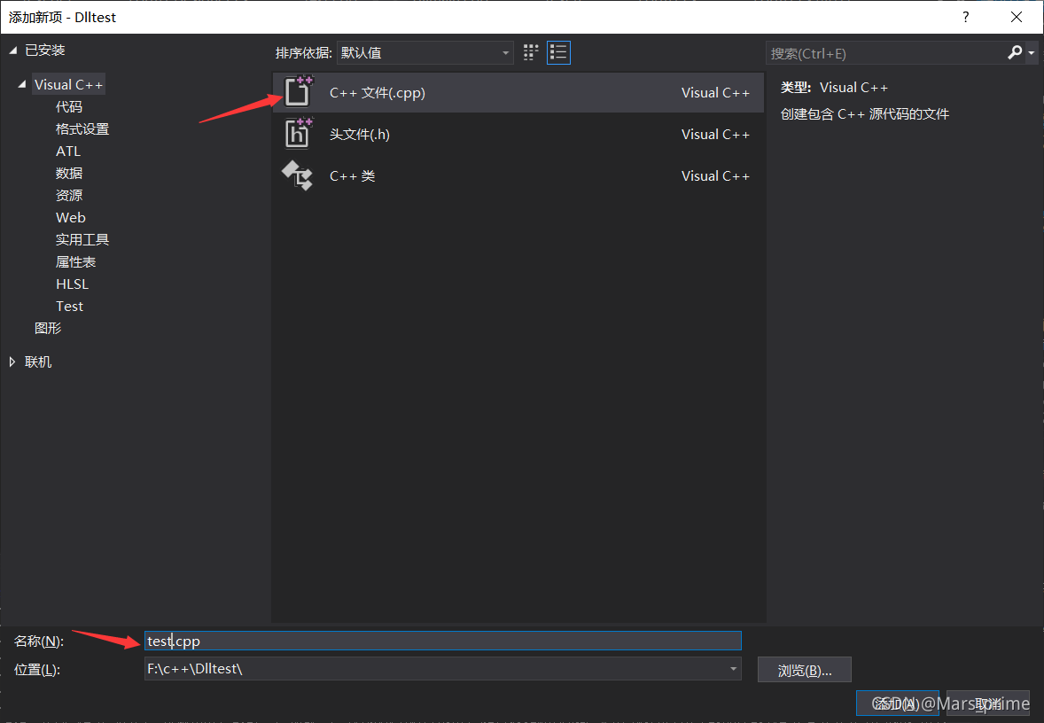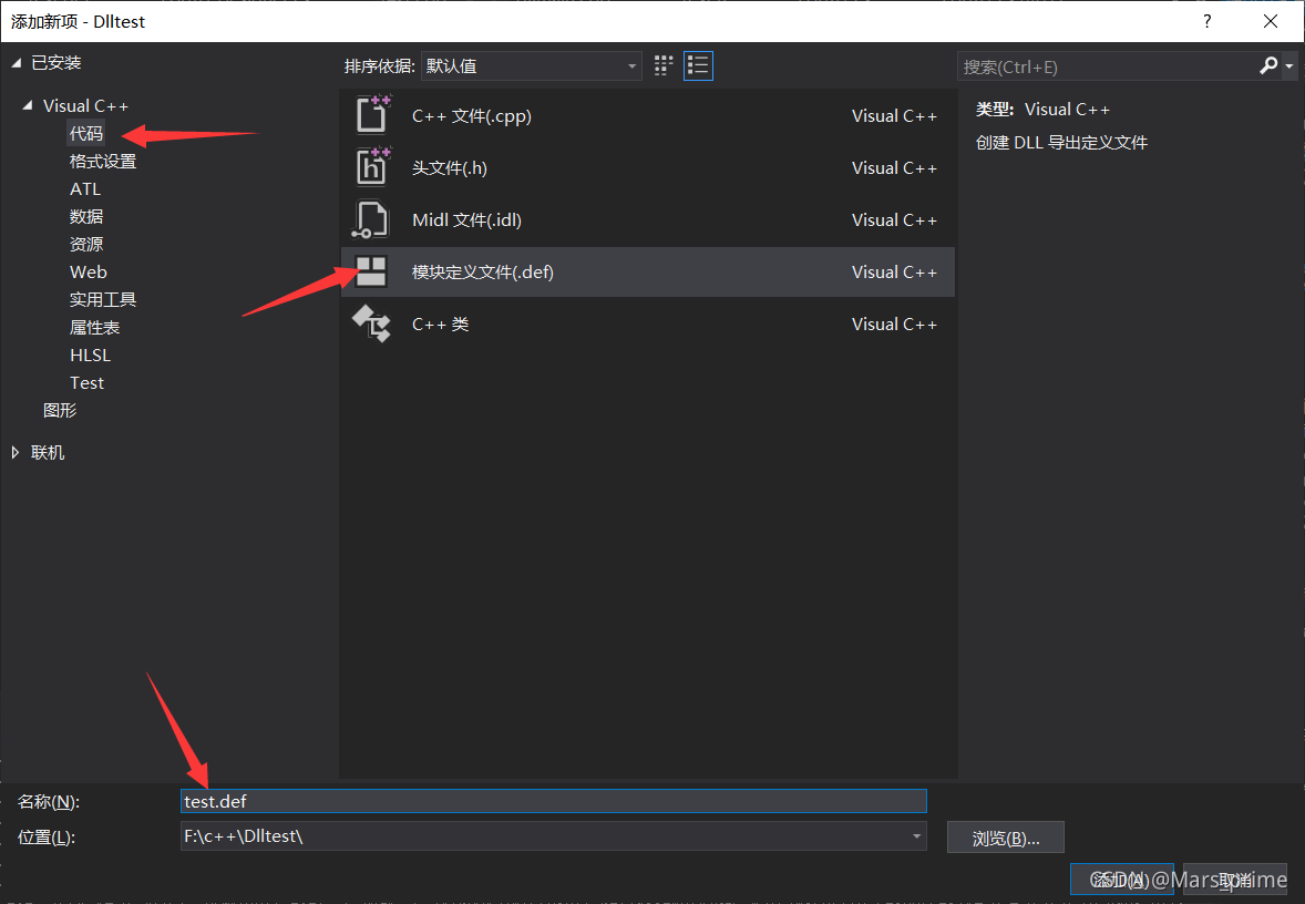 ?(8)添加定义文件,在源文件夹新建test.def
