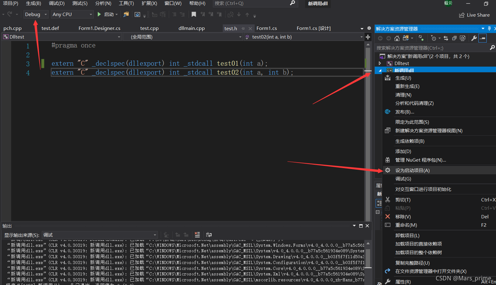 (1)将C#项目设置为启动项目,并且将解决方案设置为Debug模式