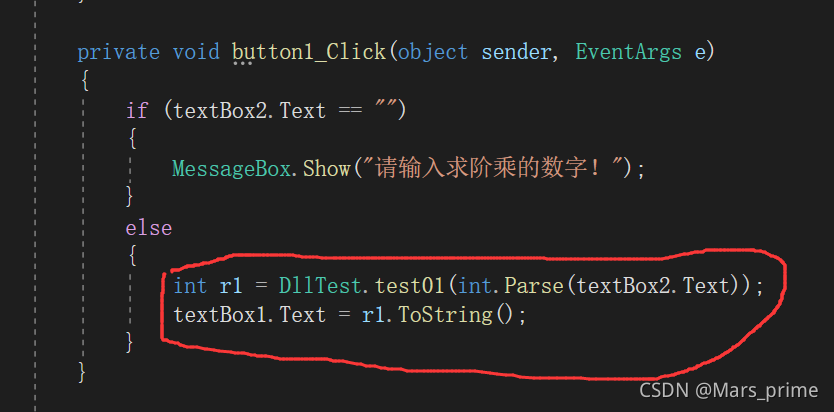 int r1 = DllTest.test01(int.Parse(textBox2.Text));