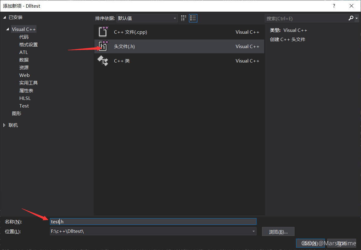 ?(7)添加刚刚写的头文件“test.h”和“pch.h"