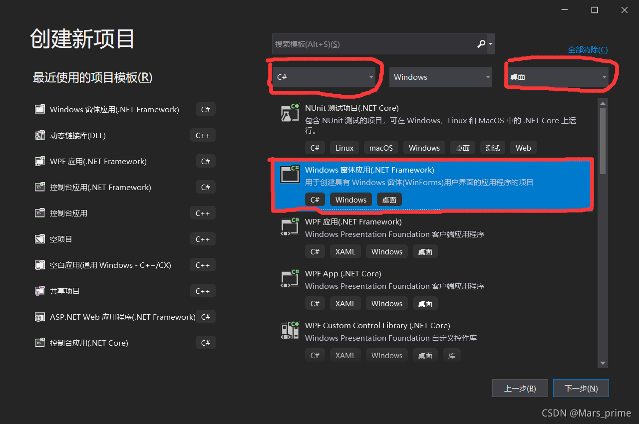 (1)启动VS》新建项目》选择c# windows窗体应用(.net Framework)