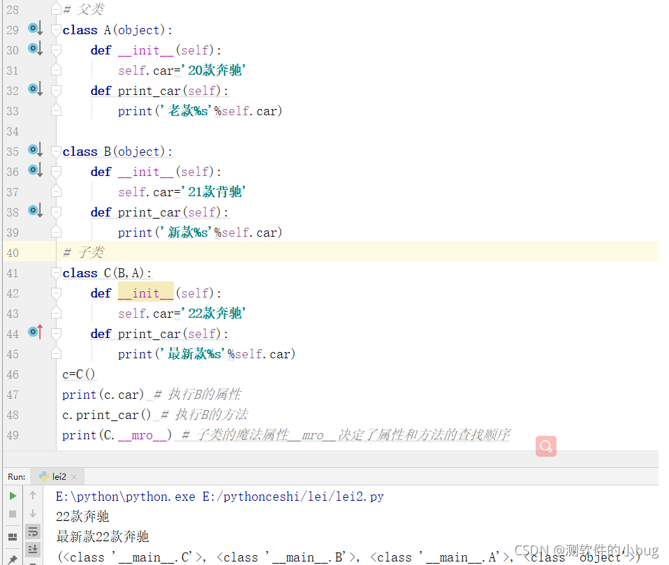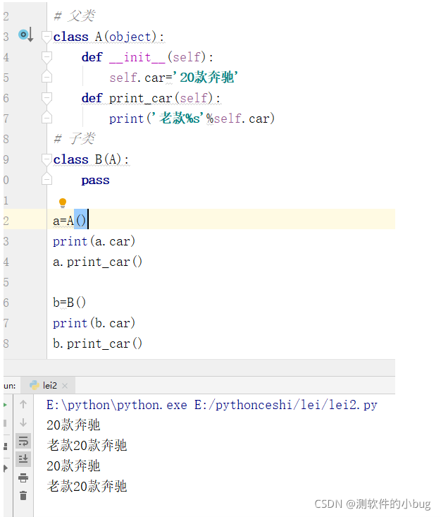 1.继承在程序中,继承描述的是多个类之间的所属关系。 如果一个类A里面的属性和方法可以复用,则可以通过继承的方式,传递到类B里。 那么类A就是基类,也叫做父类;类B就是派生类,也叫做子类。 案例: