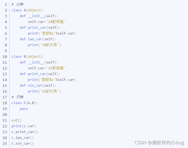 ?子类在继承的时候,在定义类时,小括号()中为父类的名字 3.多继承子类继承多个父类 案例1: