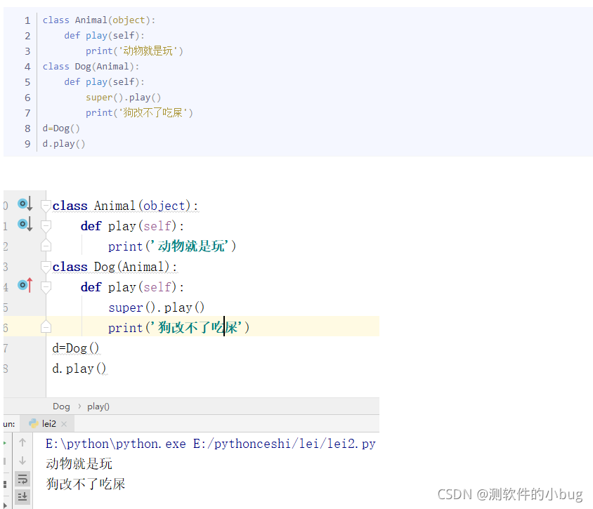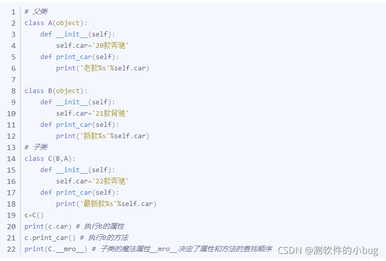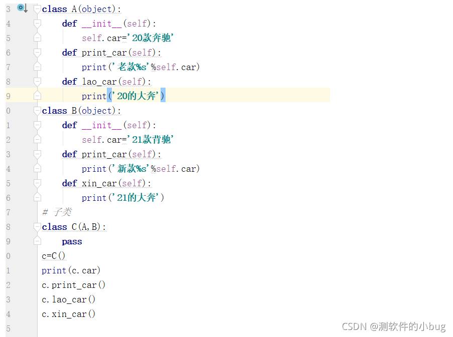 ?多继承可以继承多个父类,也继承了所有父类的属性和方法 4.子类重写父类的同名属性和方法